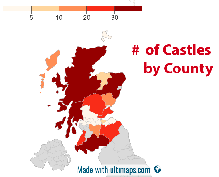 Over the centuries, Scotland has been home to over 2,000 castles, although many are only known through historical records. For our analysis, we’ve selected a representative sample of 300 unique historical structures, based on a 33-county administrative framework.