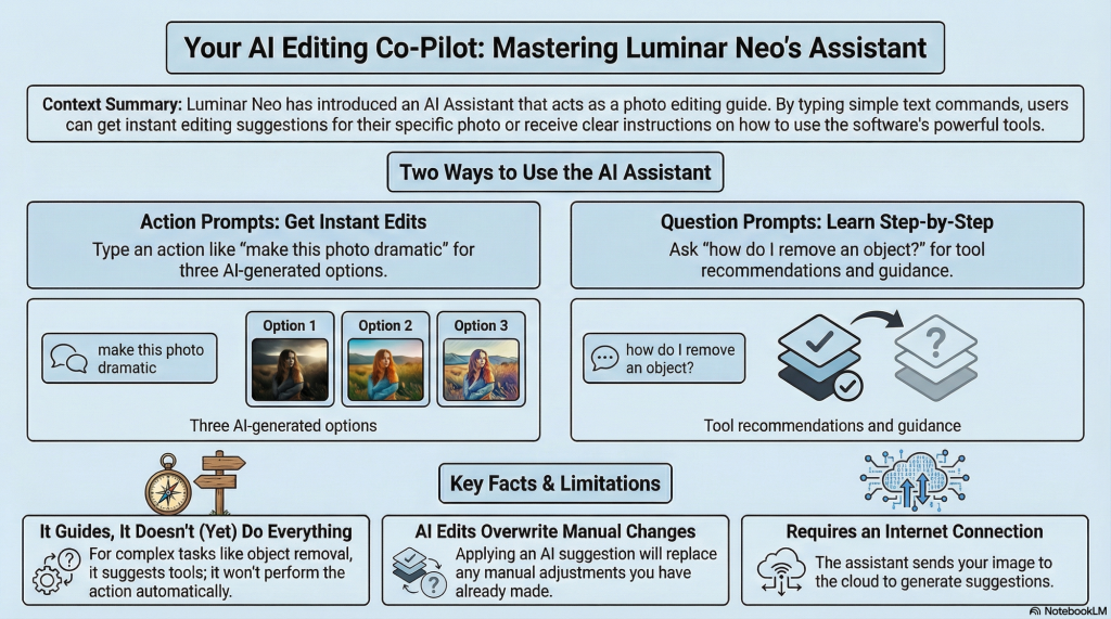 This detailed overview captures the key functionalities, demonstrations, benefits, and limitations of the AI assistant in Luminar Neo as presented in the video by Anthony Morganti. That combined with our own input offers a comprehensive guide for users aiming to leverage this new feature effectively.