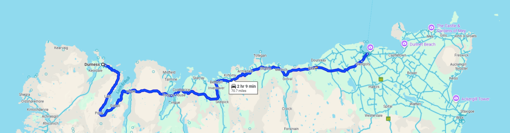A short run now, around 71 miles and just over 2 hours, without stops ! The trip to Thurso is a photographer’s dream trip; an enchanting mix of wild charm and peaceful scenery which you will surely recall it if you lingered a bit in Durness. Next, you follow the northern shoreline, skirting the periphery of the Flow Country passing by tiny lochs and lochans where the light tends to be otherworldly. Then, the final stretch to Thurso, where the terrain softens with broader fields and dispersed crofts, all of which offer a glimpse into the past, human stories and strength. The experience is simply unforgettable. Each twist and turn reveals more spectacular sights, so, have camera ready.